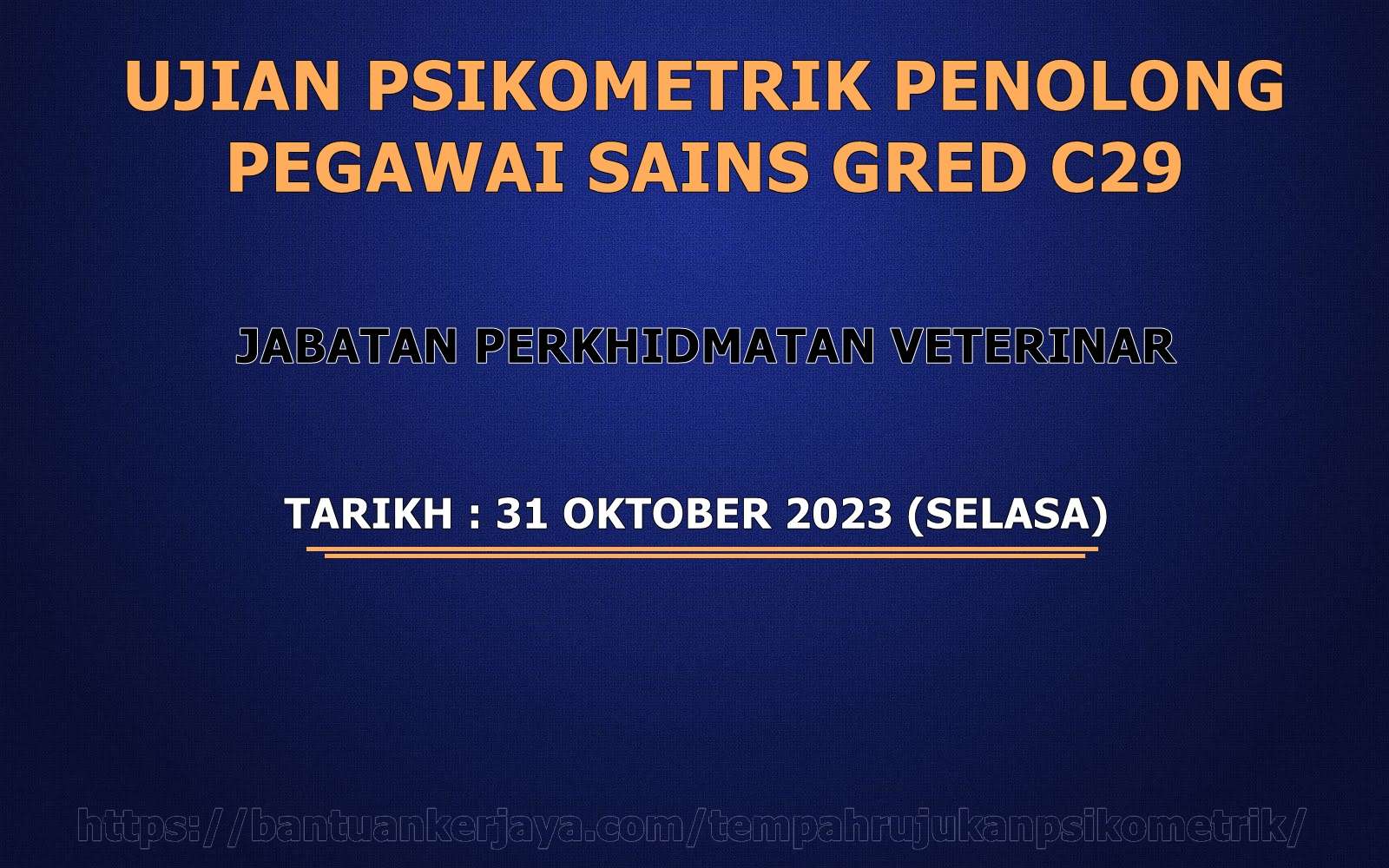 Panggilan Ujian Psikometrik Penolong Pegawai Sains Gred C29 Jabatan Perkhidmatan Veterinar (DVS) bagi tahun 2023. Semak panggilan anda sekarang!